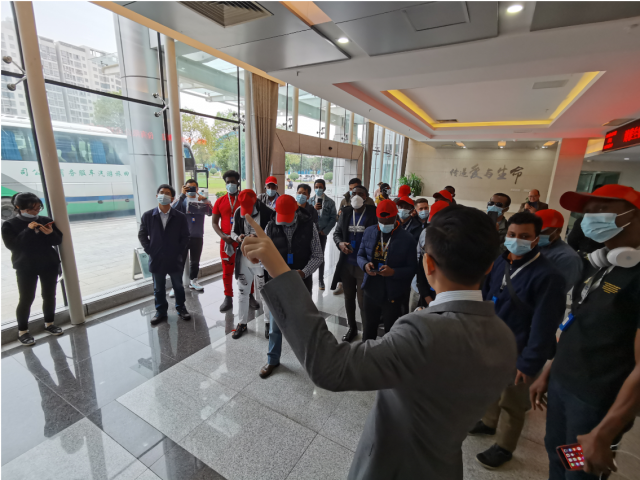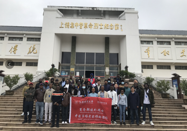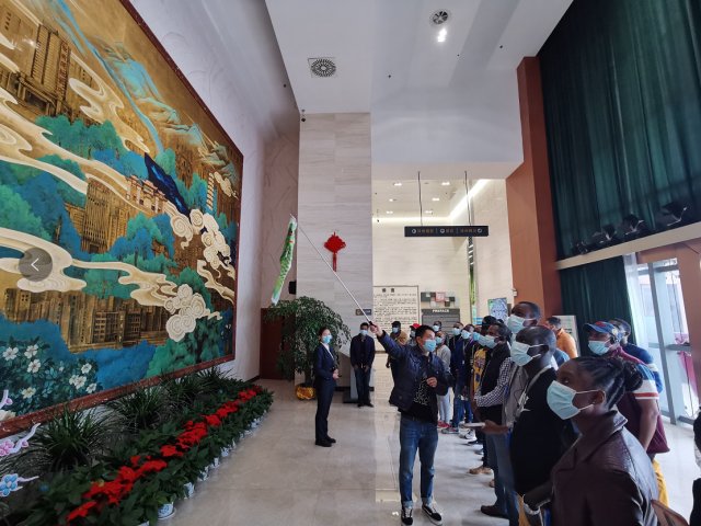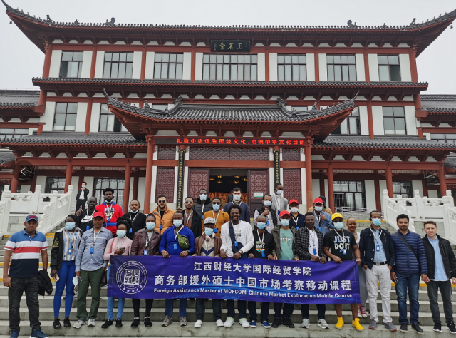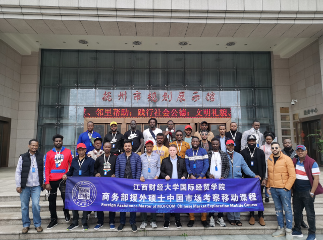 为进一步增进商务部援外硕士对中华传统文化的了解,感受中国改革开放以来的伟大成就,11月20日至22日,国际经贸学院组织商务部援外硕士考察团赴江西抚州、上饶两地考察学习。国际经贸学院副院长黄先明、国际商务系主任陈琦、海外教育办公室相关工作人员以及来自埃塞俄比亚、坦桑尼亚、肯尼亚、苏丹、加纳、摩洛哥等20个国家和地区的46名留学生参加了本次调研考察。 在抚州市调研期间,考察团一行访问了江西省博雅生物制药股份有限公司、珍视明药业有限公司、卓朗抚州数字经济产业基地等当地知名企业,参观了抚州城市规划展示馆和汤显祖纪念馆。11月20日上午,在博雅生物制药股份有限公司的考察过程中,引导员用流利的英语向留学生考察团一行介绍企业发展历史、强力球和经营发展成果,并展示了公司多种血液制品的生产工艺流程。